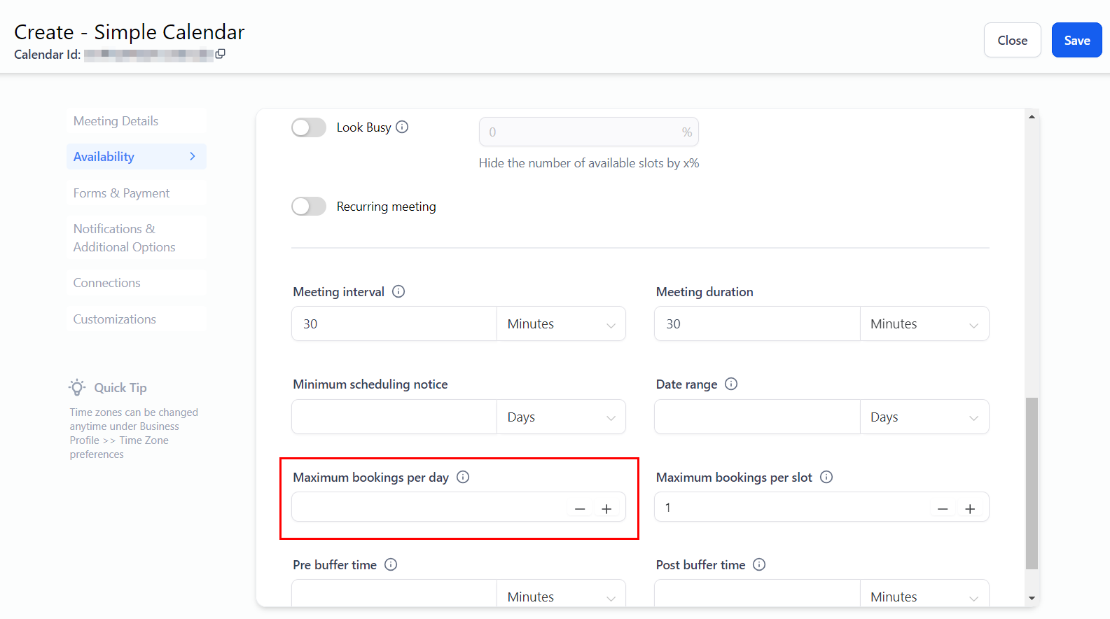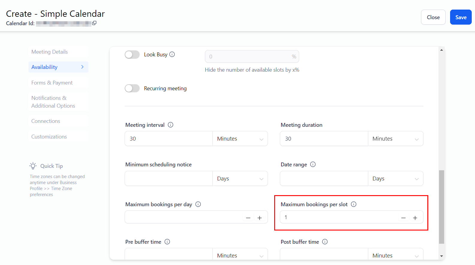 Maximum Bookings Per Slot