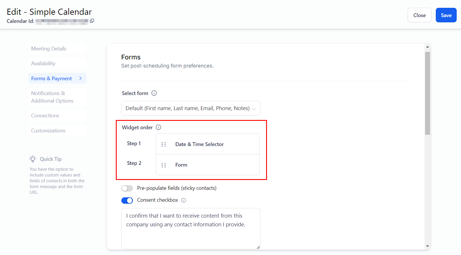 This will set the order in which the contacts fill out the form and book their appointment.