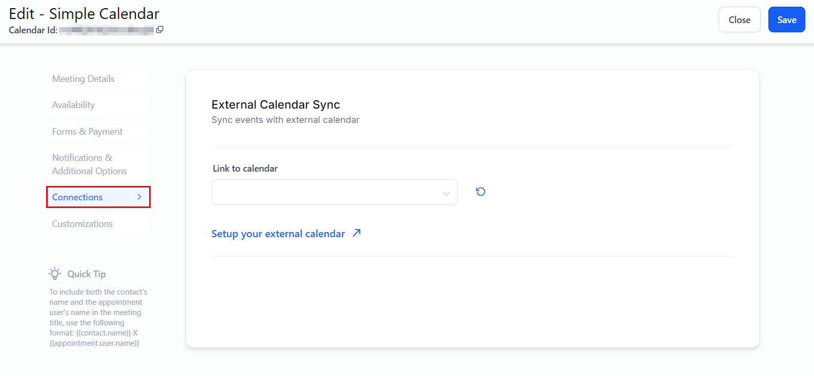 Save the calendar, then close the modal to complete the setup process!