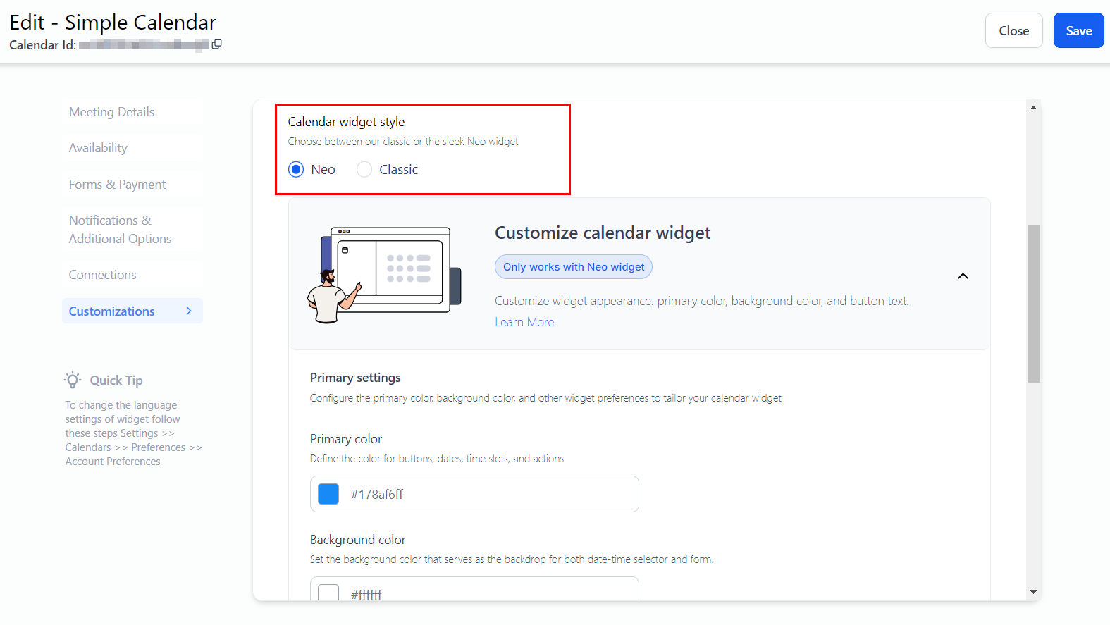 Select between our classic widget and the modern Neo widget.
