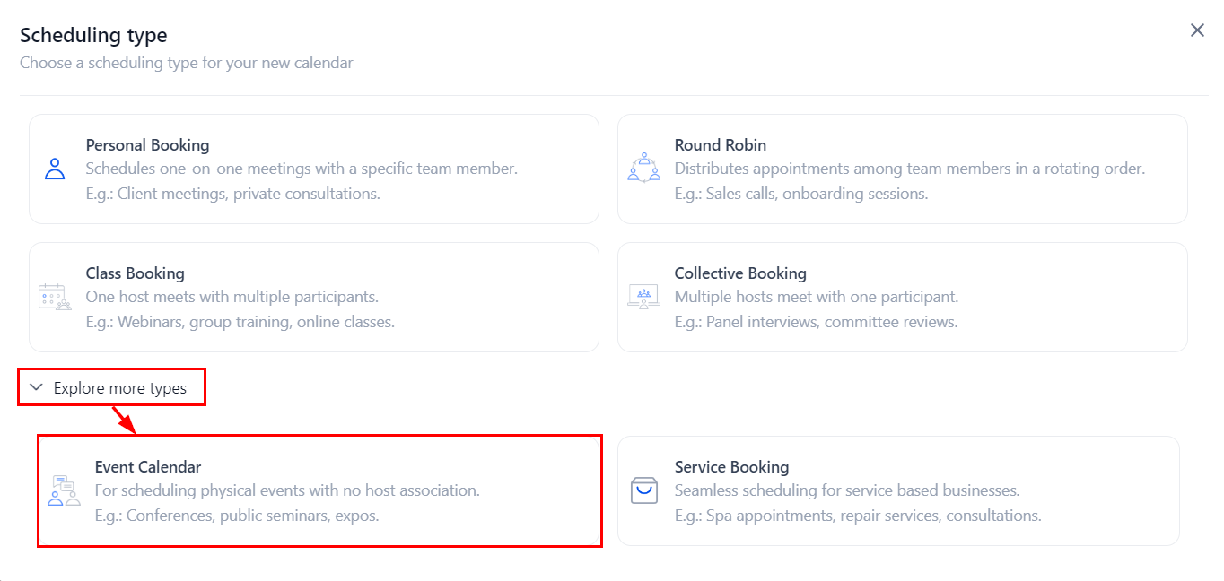 Next, choose the "Event Calendar" option.