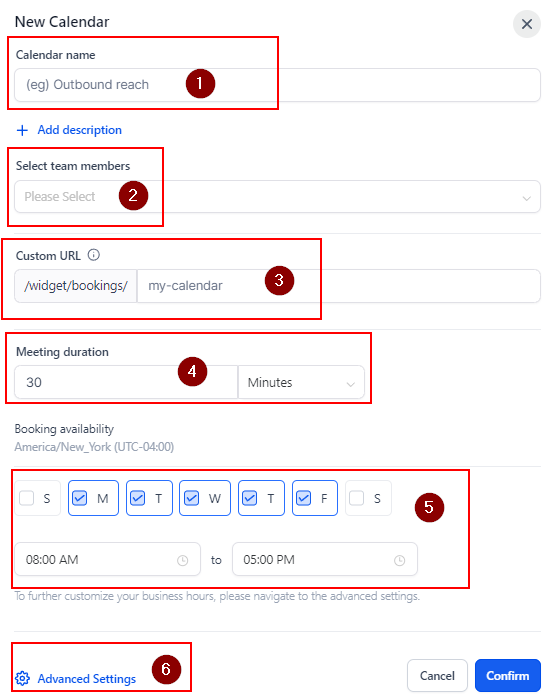 Calendar Name: The name will show why they are scheduling an appointment for leads and customers.