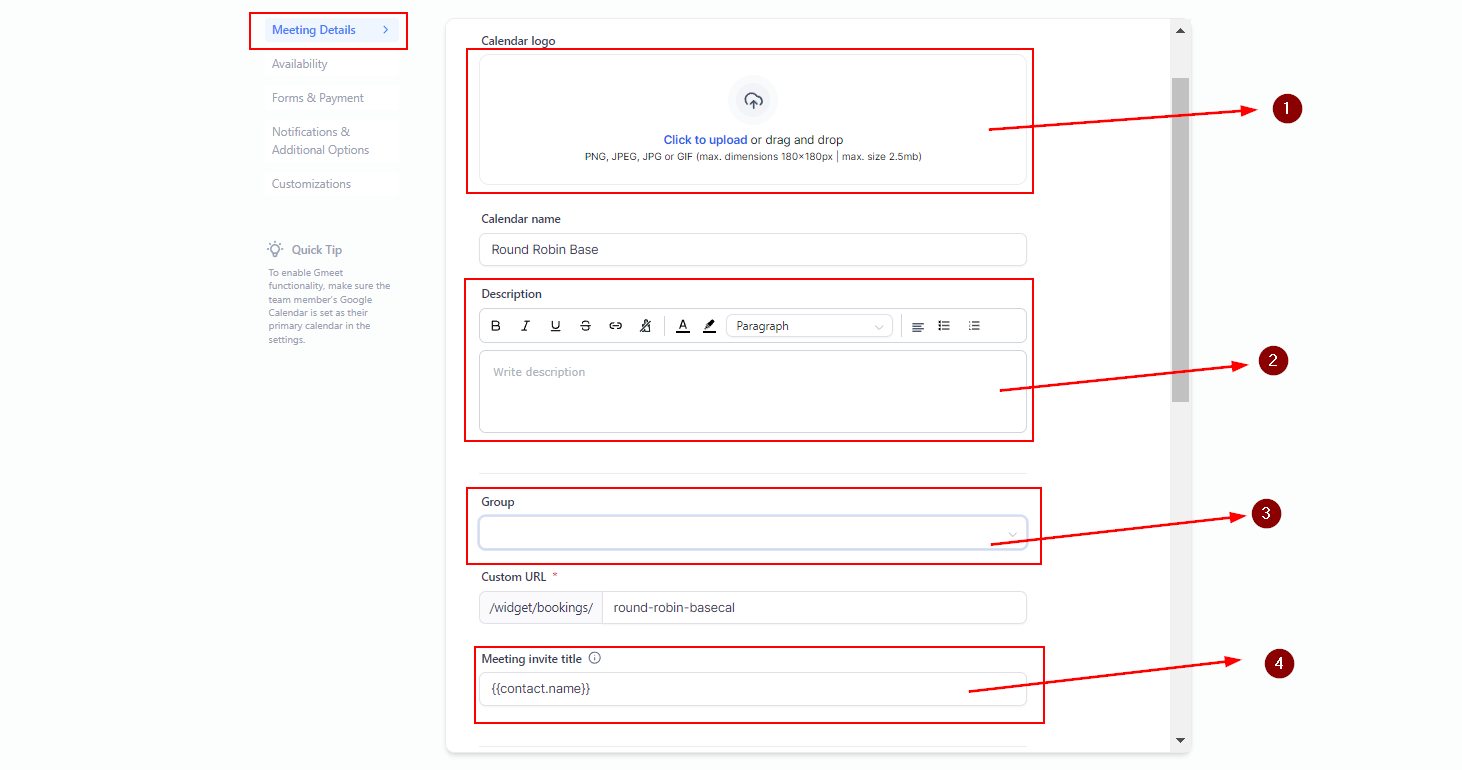 Meeting invite title: When your leads/customers schedule an appointment, this title will get added to your calendar and the confirmation email.