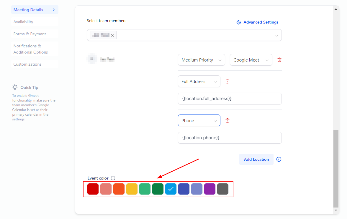 Furthermore, you can allow the booker to input their preferred meeting location when one team member is selected.
