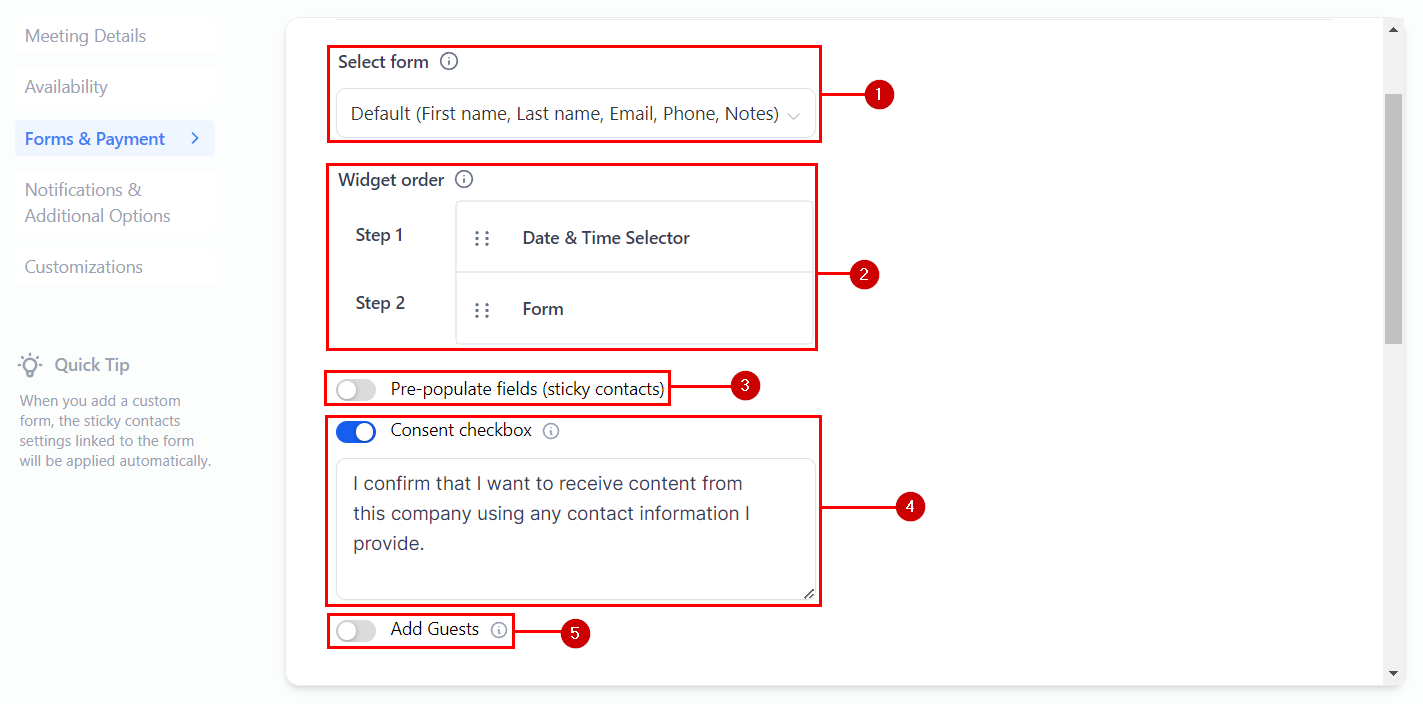 Widget order: This will set the order in which the contacts fill out the form and book their appointment.