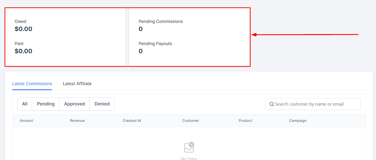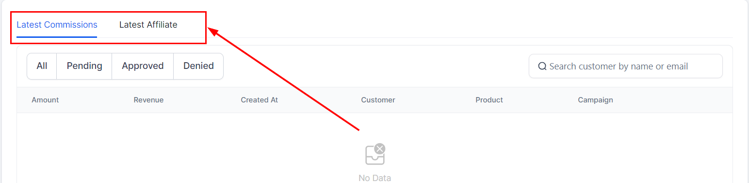Keep updated with the newest affiliates and the latest commissions by viewing the pertinent details and actions within this section. Utilize the dashboard to approve or deny commissions efficiently.