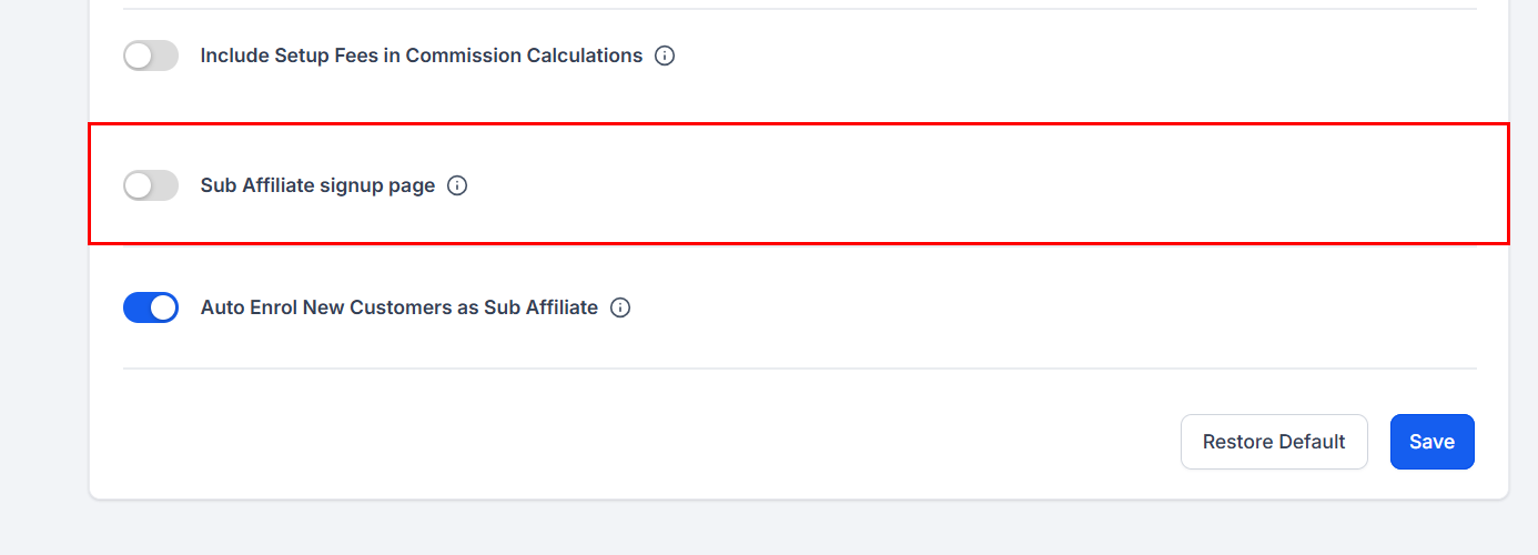 Enable this toggle to grant affiliates the ability to independently share sign-up forms and recruit sub-affiliates.