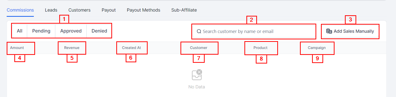You will see the commission that all affiliates earned from customers from each campaign.