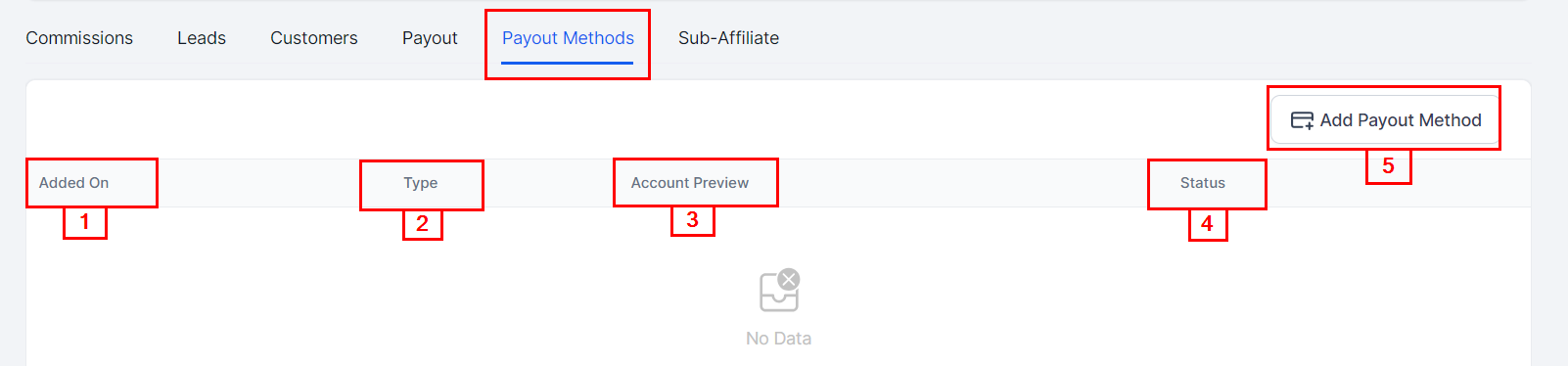 Add Payout Method: Enables you to add the PayPal account associated with the affiliate directly to the system.