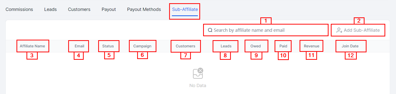 Owed: The payout owed to each sub-affiliate will be displayed here.