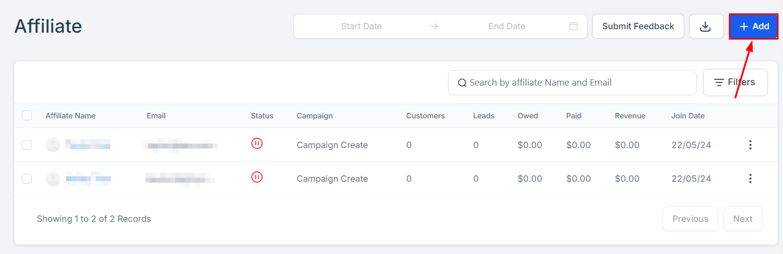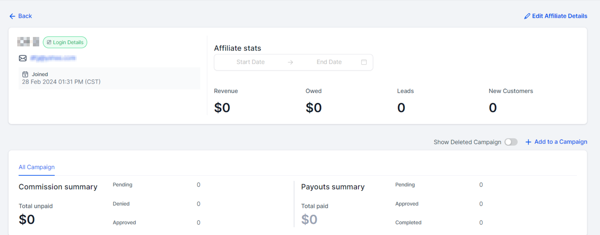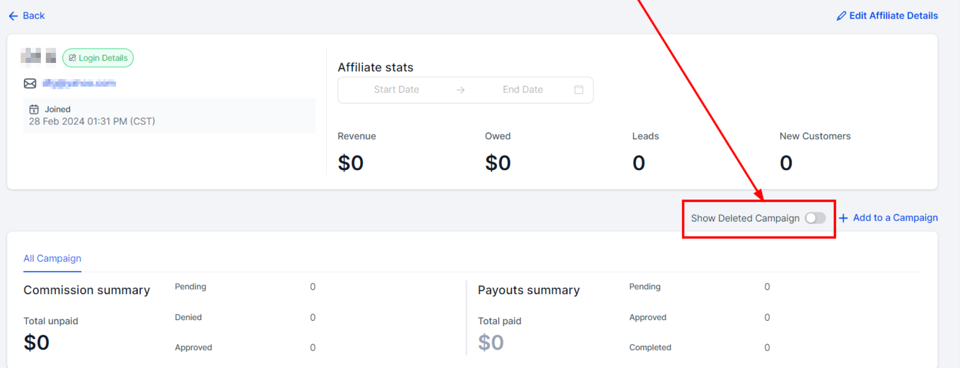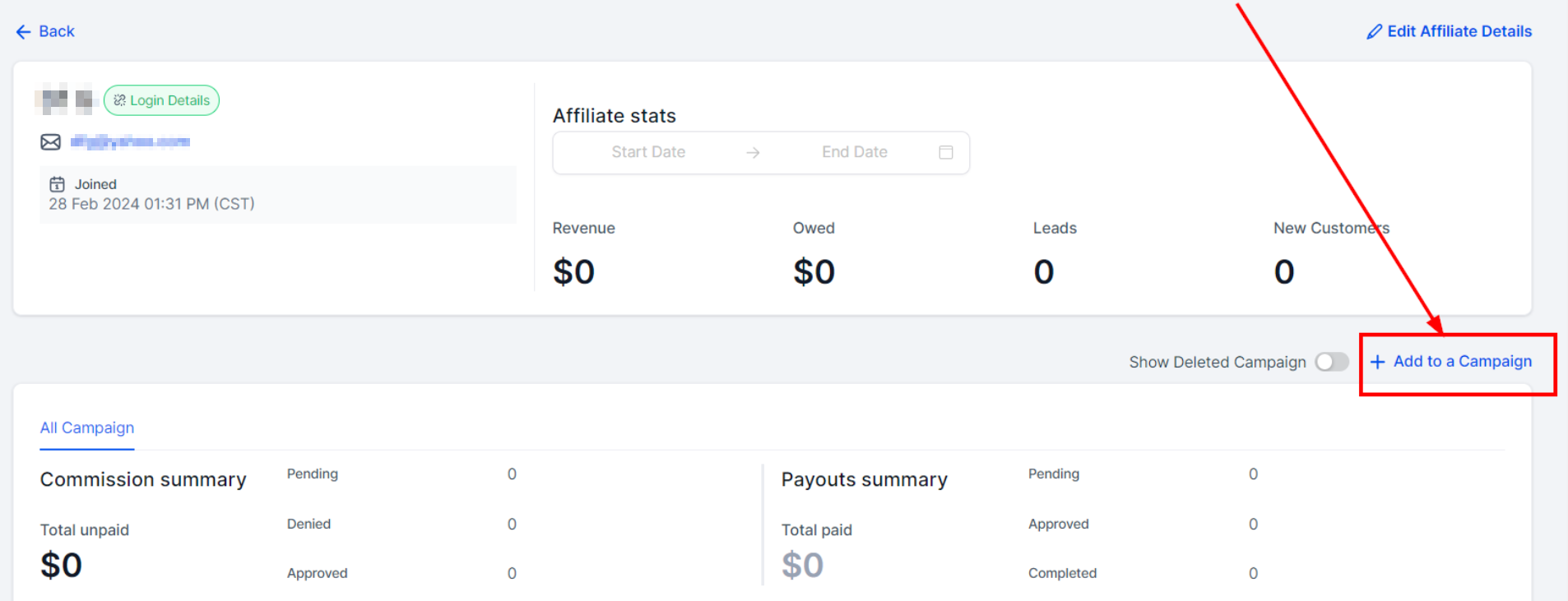 Click on the βAdd to a Campaign" button to add an affiliate to a campaign.