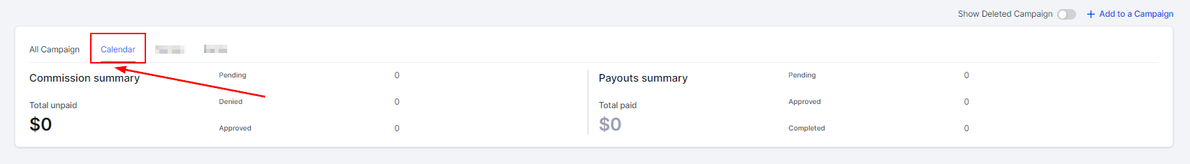By switching to the tabs next to all campaigns you can see the summary of individual campaigns, there will be a tab for every campaign the affiliate is added to.