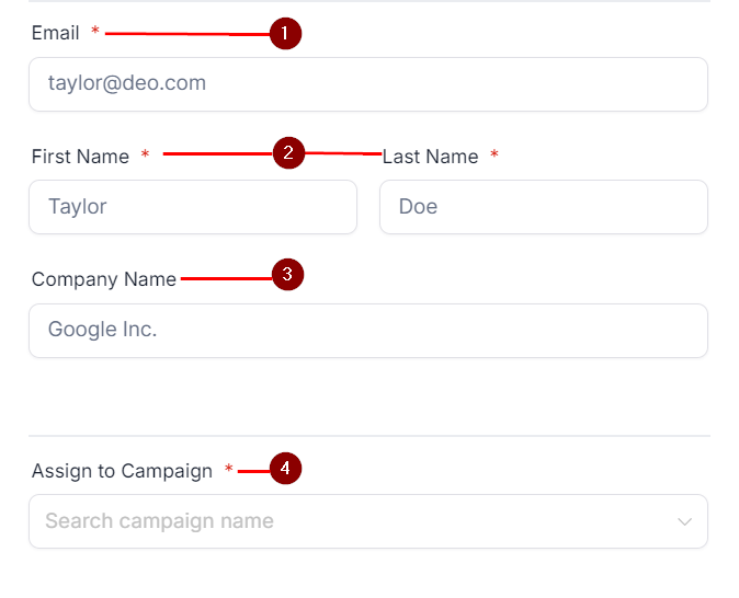 Ensure your file is in CSV format and includes the following fields: First Name, Last Name, and Email. The maximum file size is 50MB. A sample document is available for reference.