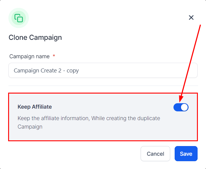 6. Decide on Affiliate Inclusion: Choose whether to retain the affiliates from the original campaign or start anew.