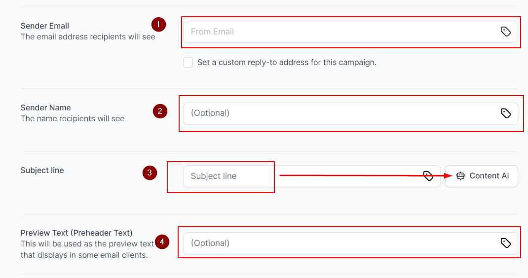Add the email's Subject line, this is required for sending. You can use AI to generate it for you.