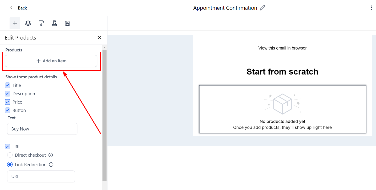 Add the products you want to showcase in your email campaign.