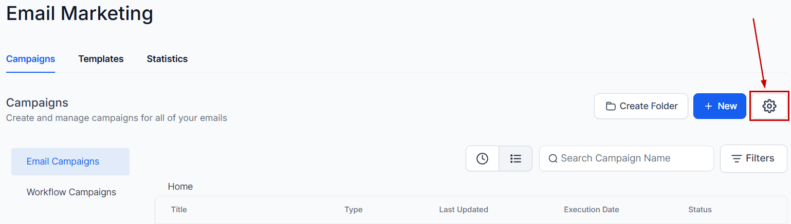 Start by navigating to the Campaigns area of your Emails tab inside the Marketing section.