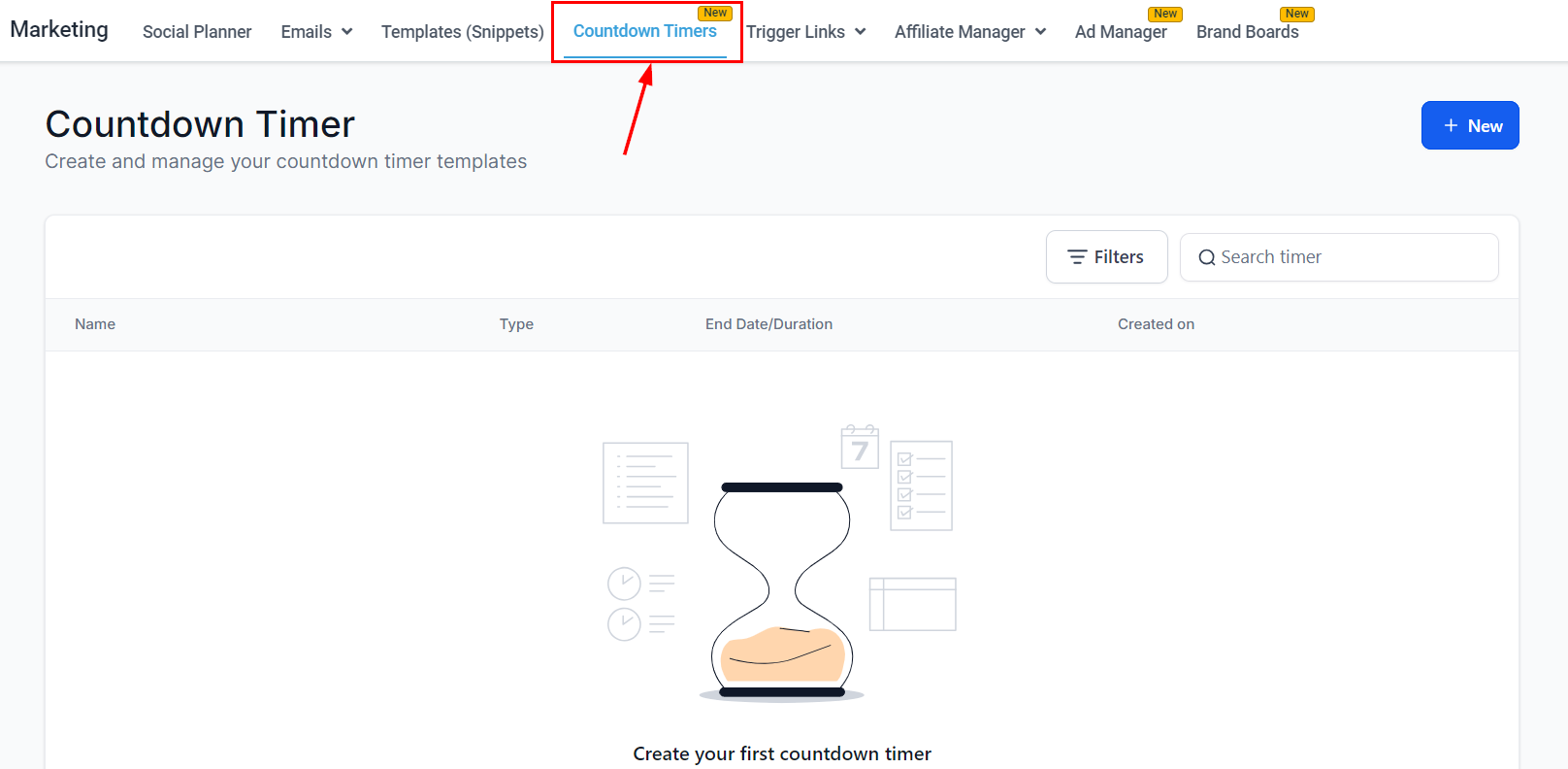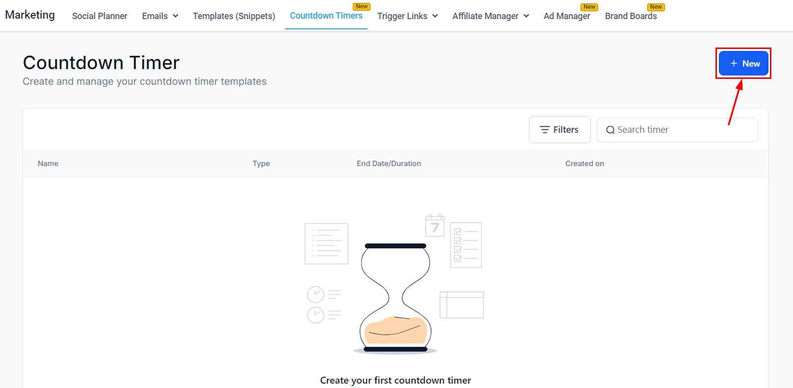 Click the βNewβ button in the upper right-hand corner to start creating your timer.