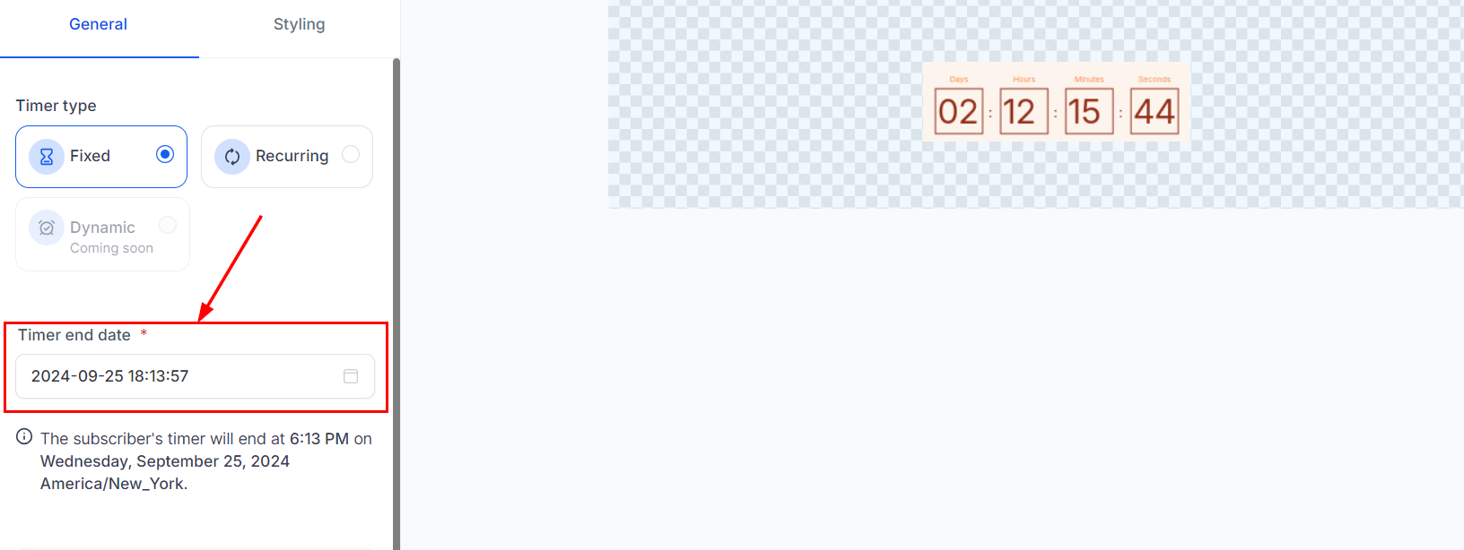 Select the type of timer you want: Fixed, Recurring, or Dynamic.