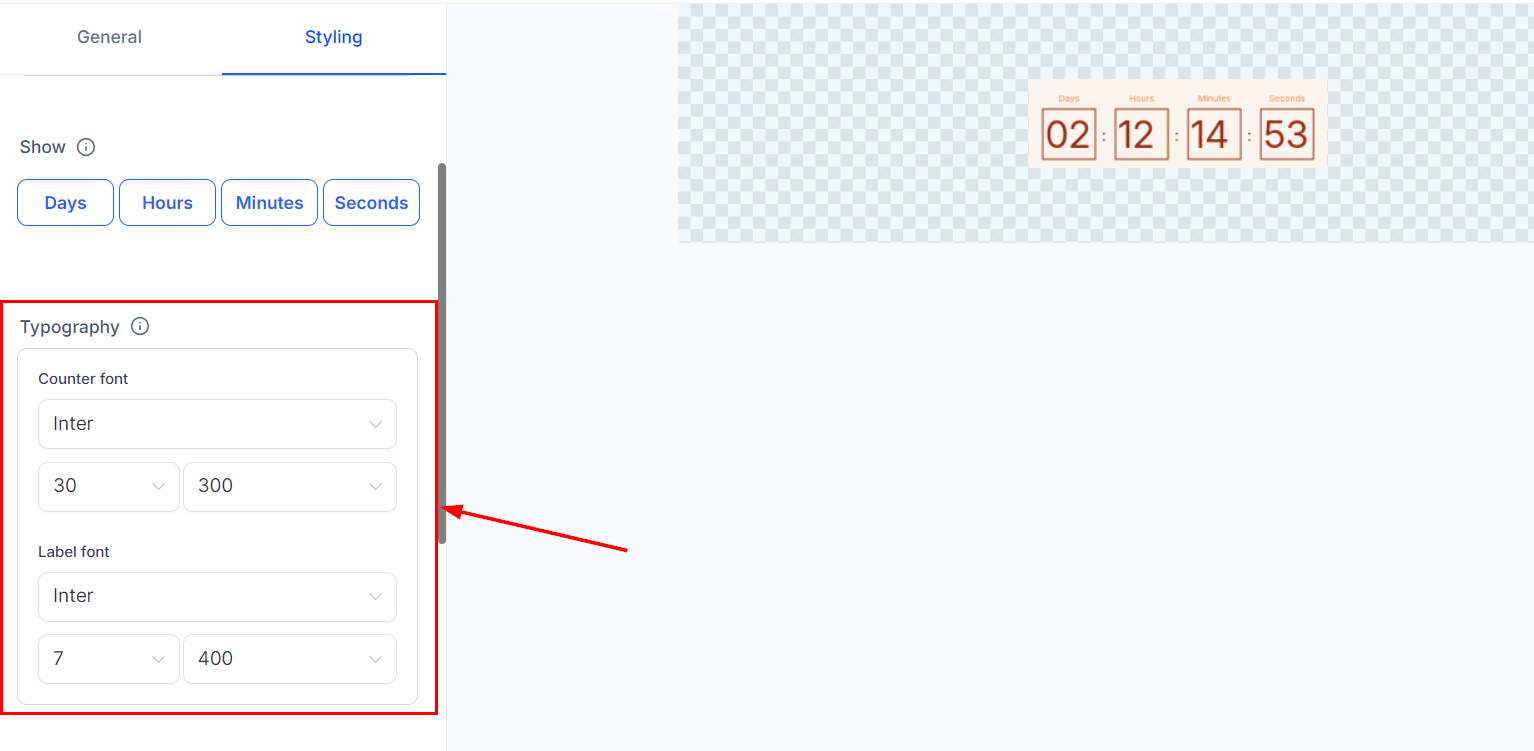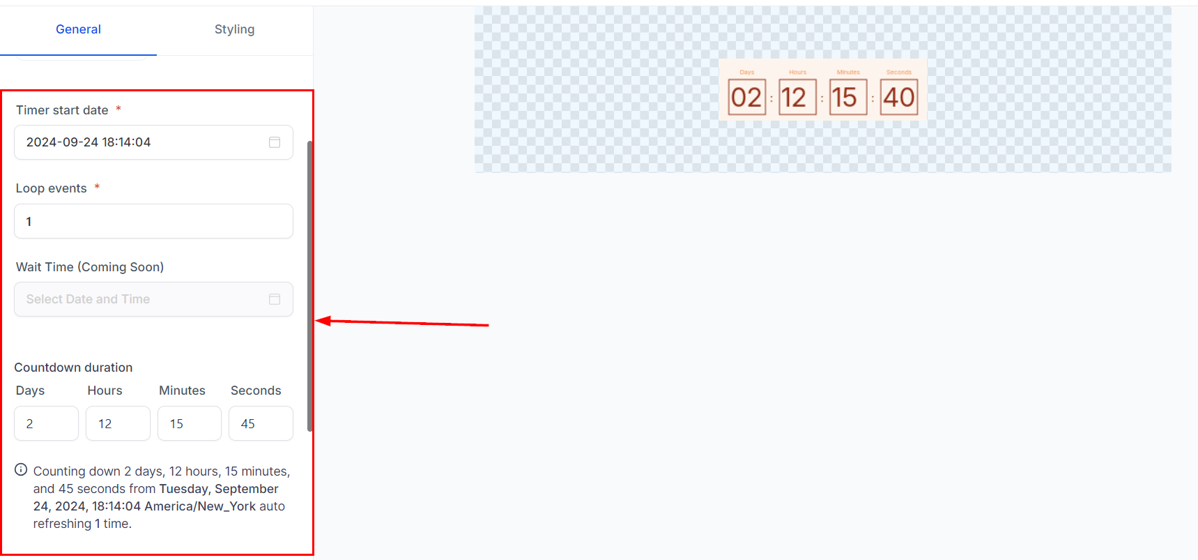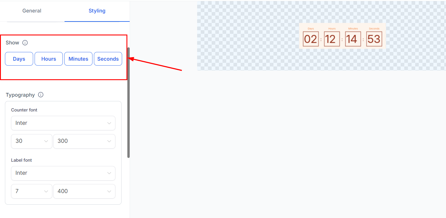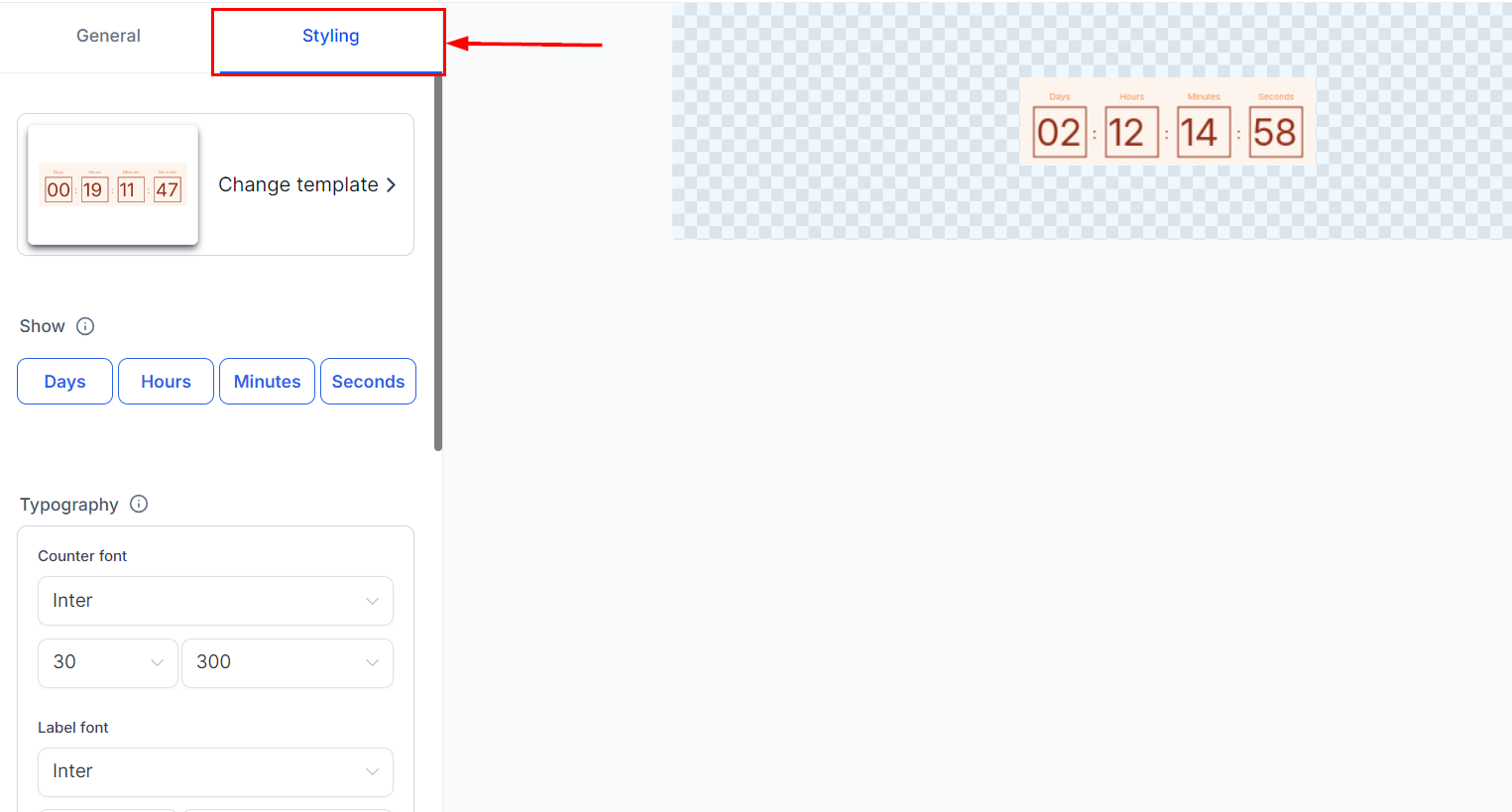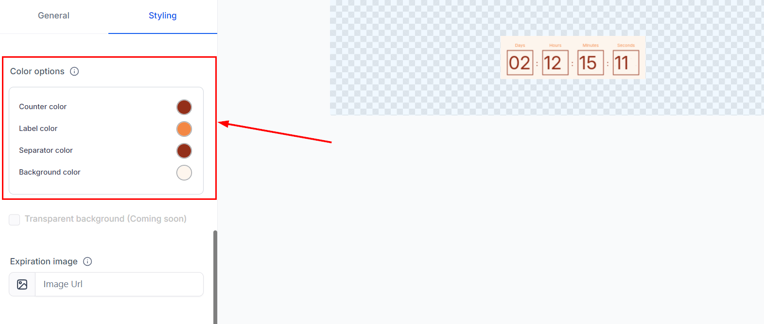 Navigate to this tab to adjust the timerβs appearance, including colors, fonts, expiry images, and time display format.