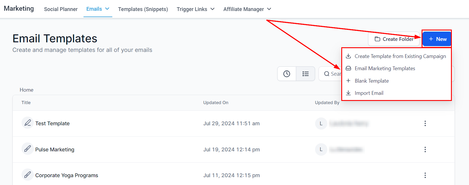 Select from a variety of pre-designed templates when creating a new email template. This feature streamlines the process by providing professionally designed, customizable templates that can be easily tailored to your specific campaign needs, saving time and ensuring consistency in your email marketing efforts.
