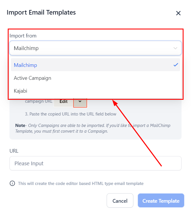 Incorporate pre-designed templates or content from external systems, facilitating easier migration and integration of your email marketing materials into the platform. You can import your email template from Mailchimp, ActiveCampaign, or Kajabi.