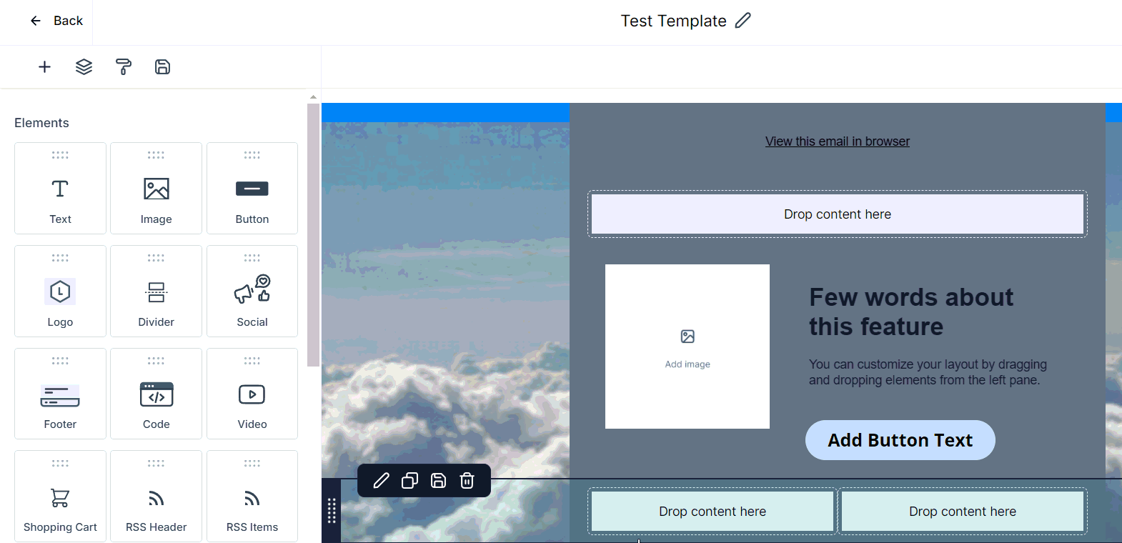 You can easily change the column layout of your email template by selecting from different options, such as single, double, etc. This allows you to change the total columns after a layout element is added.