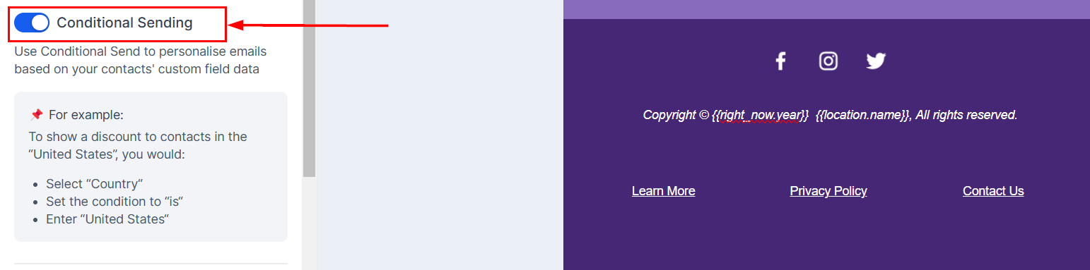 Conditional elements can be added within email campaigns or templates, enabling you to tailor content dynamically based on specific conditions. This ensures that your emails are relevant to each recipient without the need for multiple campaigns.