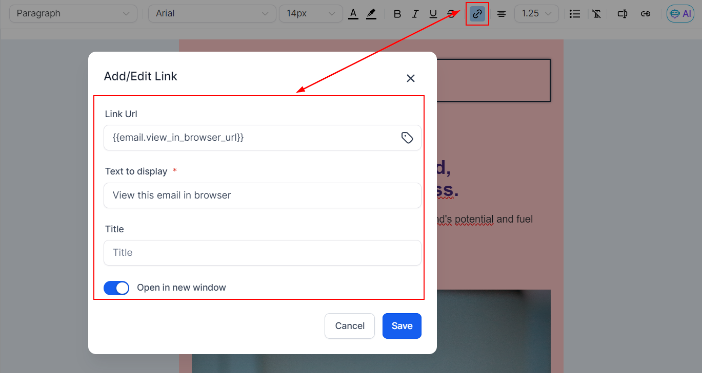 Have you ever run into issues with your email formatting? Not to worry, with the Preview in Browser element, you can ensure that your contacts can see your emails in their intended format. This element is added by default to all your blank email templates.