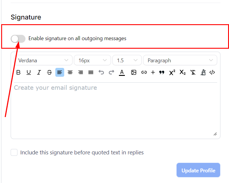Automatic Inclusion: For convenience, you can opt to have your email signature automatically included in all outgoing replies. This setting ensures that your signature is consistently used without the need for manual insertion.