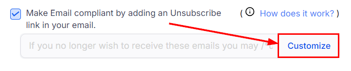 To customize unsubscribe links or create unique links tailored to specific campaigns, select "Customize" within the unsubscribe link settings.
