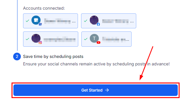Once you've connected your accounts click Get Started, this will redirect you to the social planner.