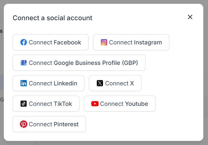 Click +Connect Social to open the options.