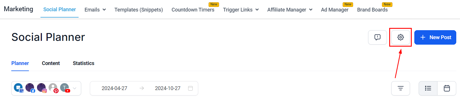 If you already have an account connected, click on the Setting option (Gear icon) at the top right corner of Social Planner.
