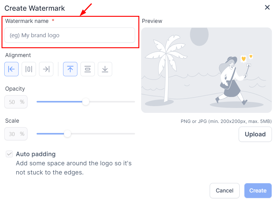 Name your watermark to easily identify it.