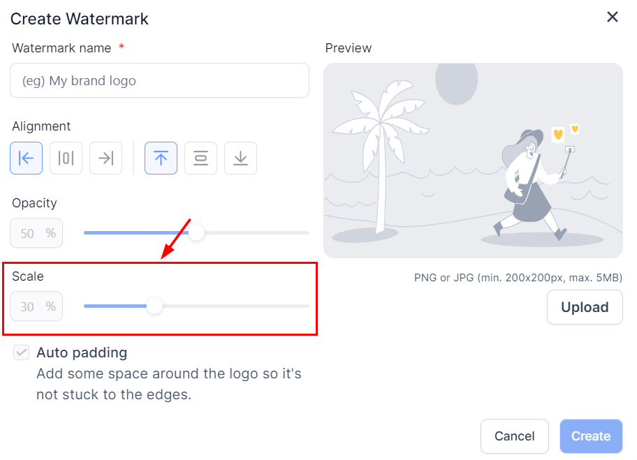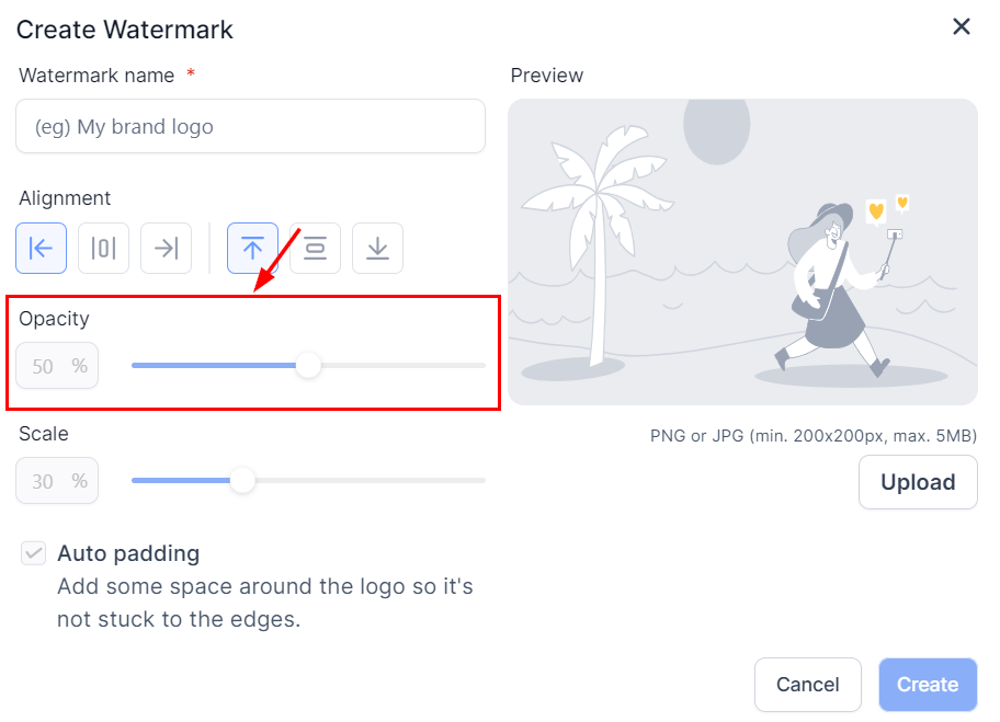 When you have completed your customizations, click โCreateโ to save your new watermark!