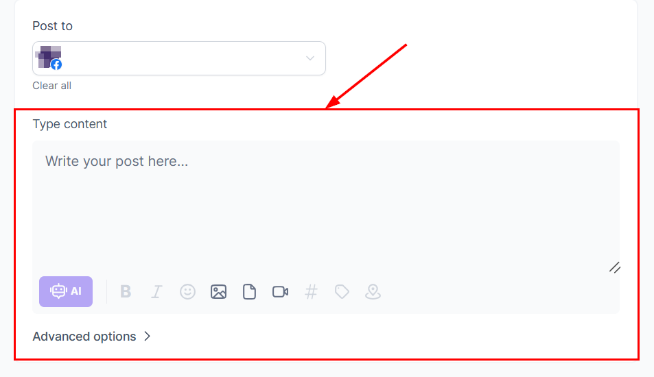 From the Post To dropdown menu, select the Facebook page(s) you wish to post to.
