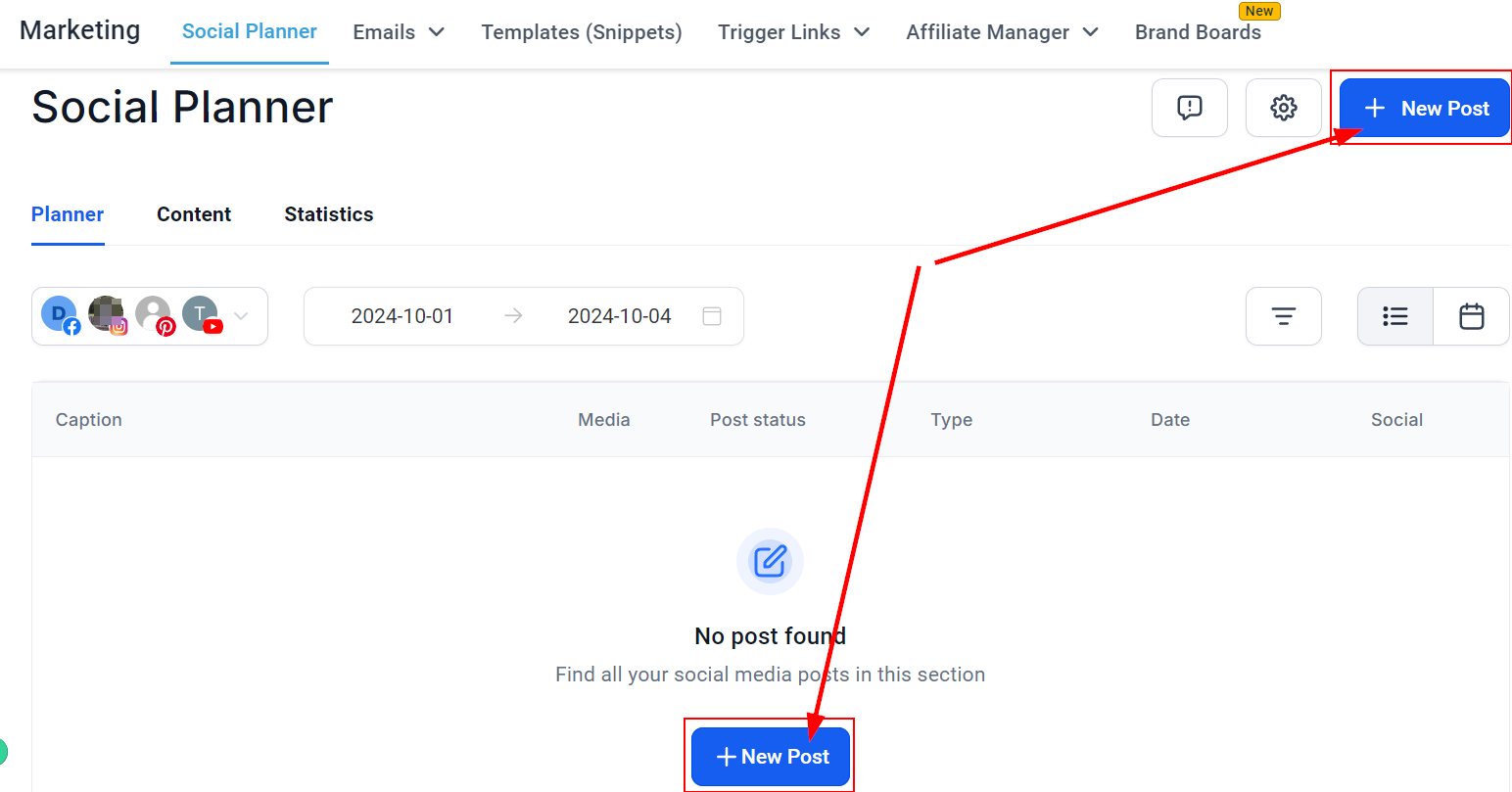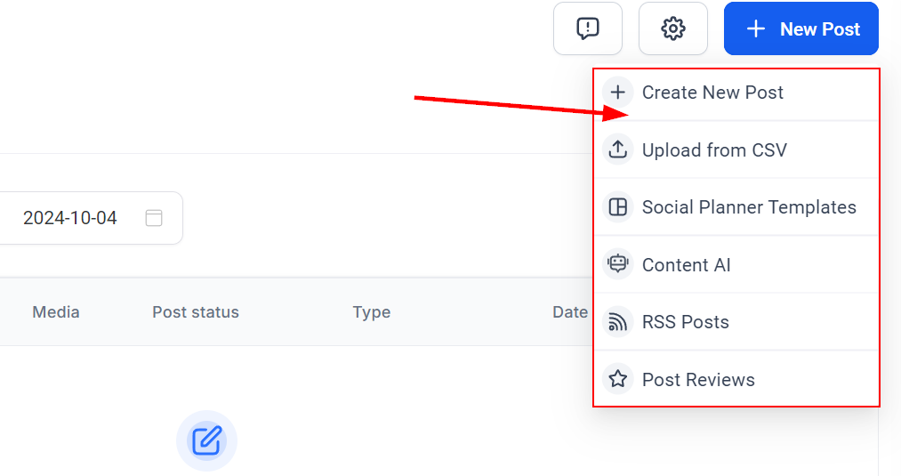 When you're ready to publish new content, all you have to do is click the blue "New Post" button in the top right corner of your page. Alternatively, there's also a "New Post" link at the bottom of your posts list.