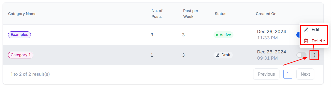 Click the three dots next to your desired category to edit its content or delete the queue.
