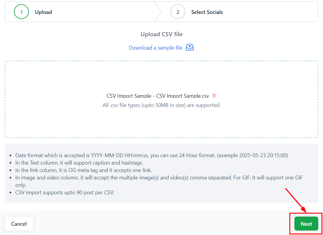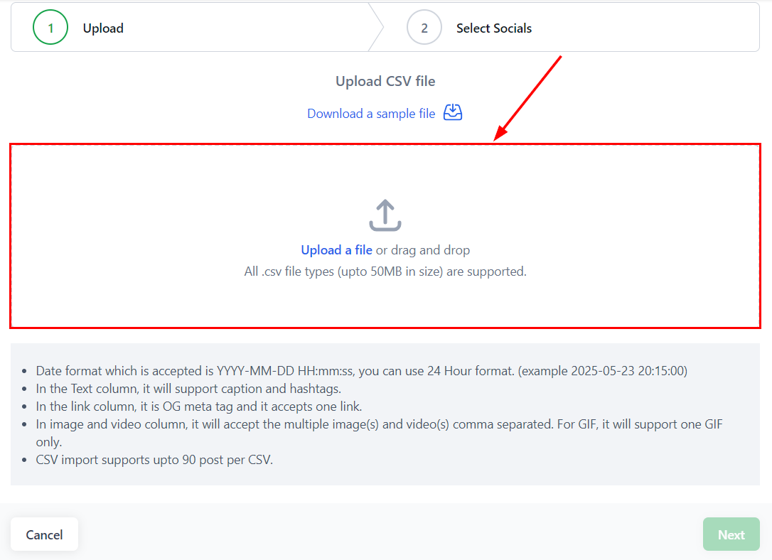 You can also upload posts in bulk using a CSV file. Hereβs how: