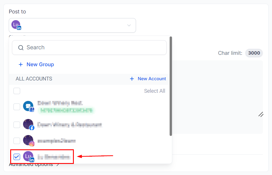 Select LinkedIn as the Social Media you want to post on.