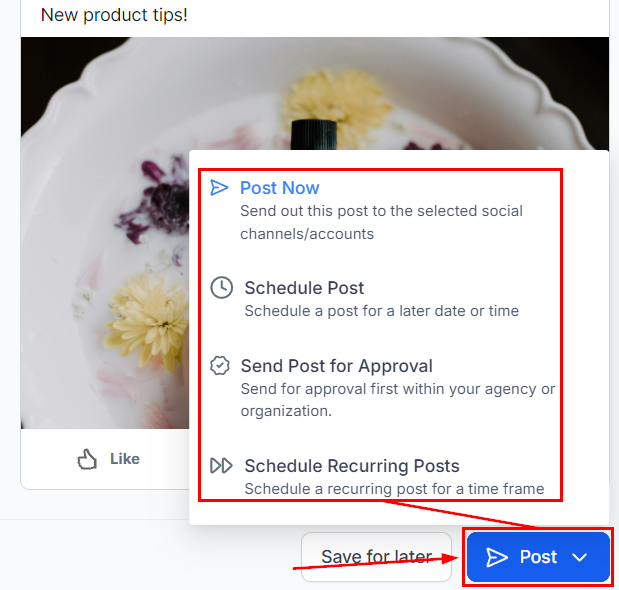 Once you are happy with your post click on the Post button, it will give you the options for the next step with the post. These will be: