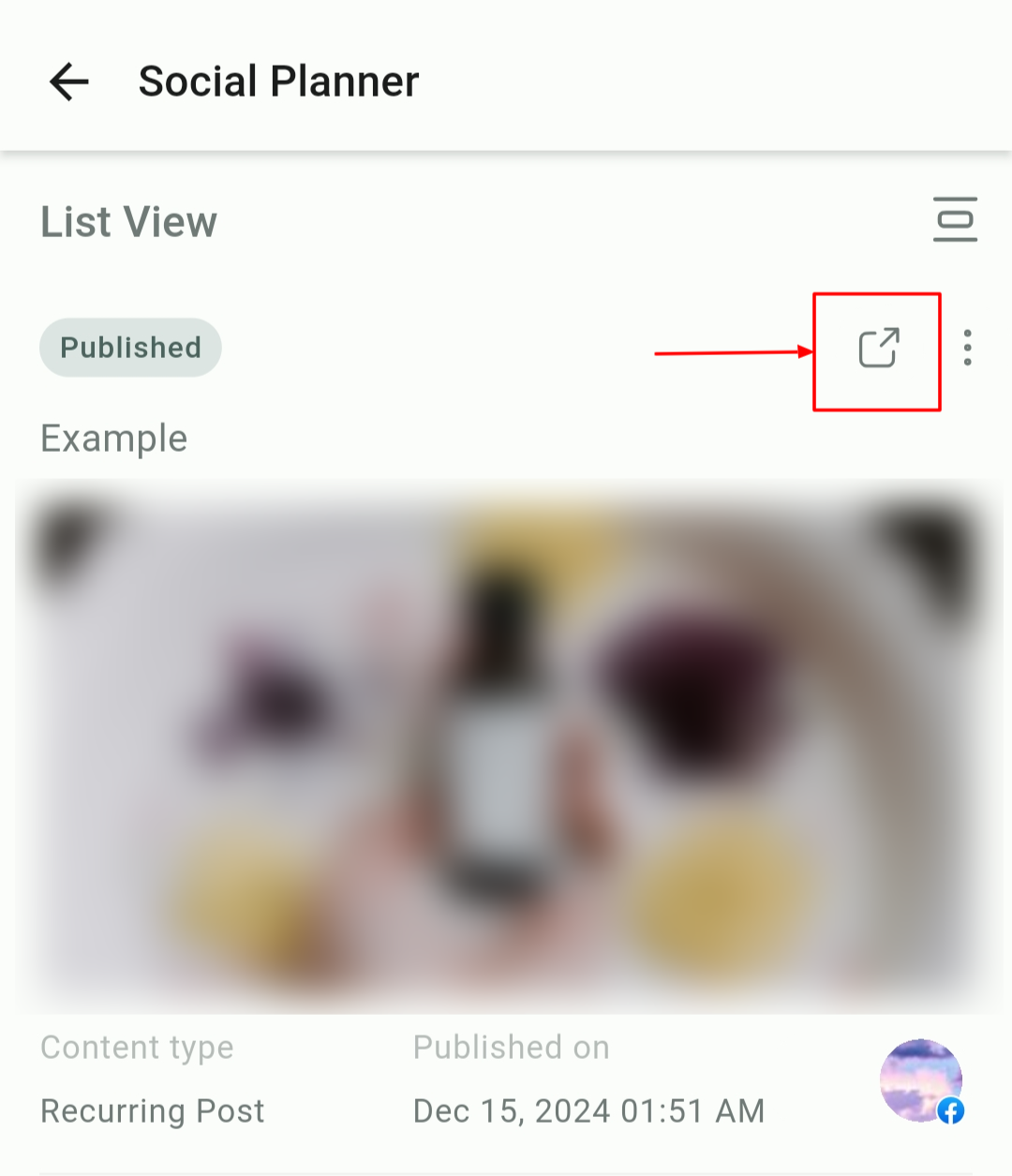 Once a post is published, tap the redirect icon on the postcard to open and view the post on its respective platform.