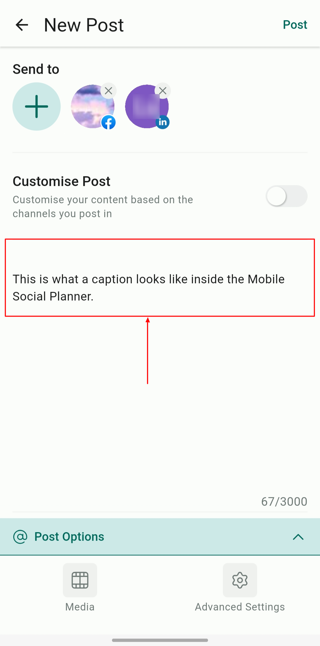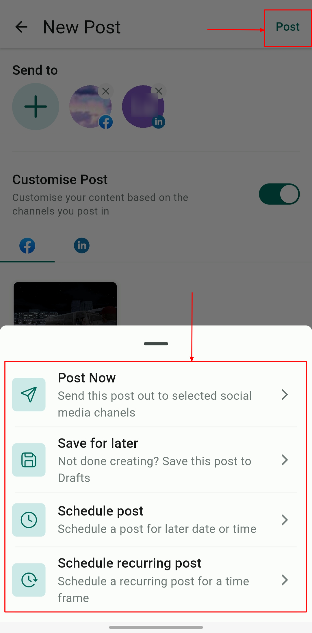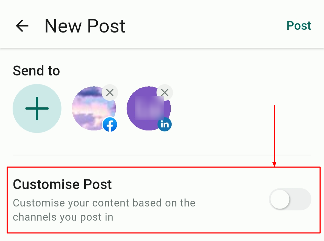 With channel-specific options, such as choosing between feed posts and reels for Facebook, toggle on βCustomise Postβ to optimize for each platform.