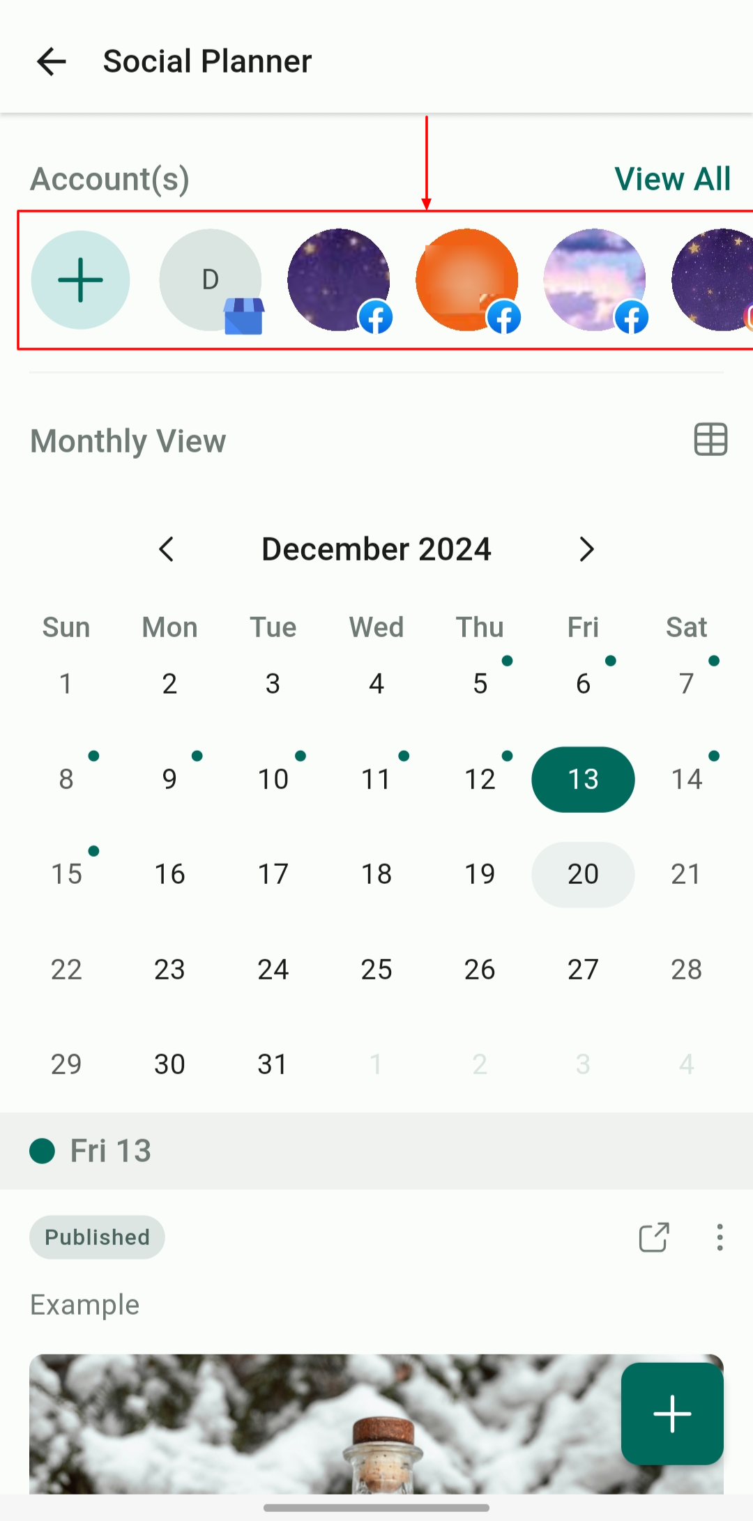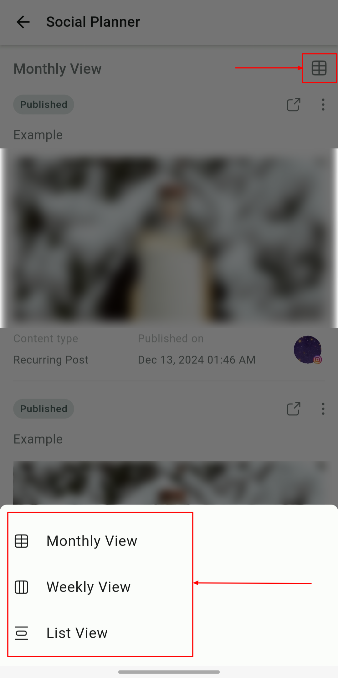 Monthly View: See a high-level overview of your posts for the month.