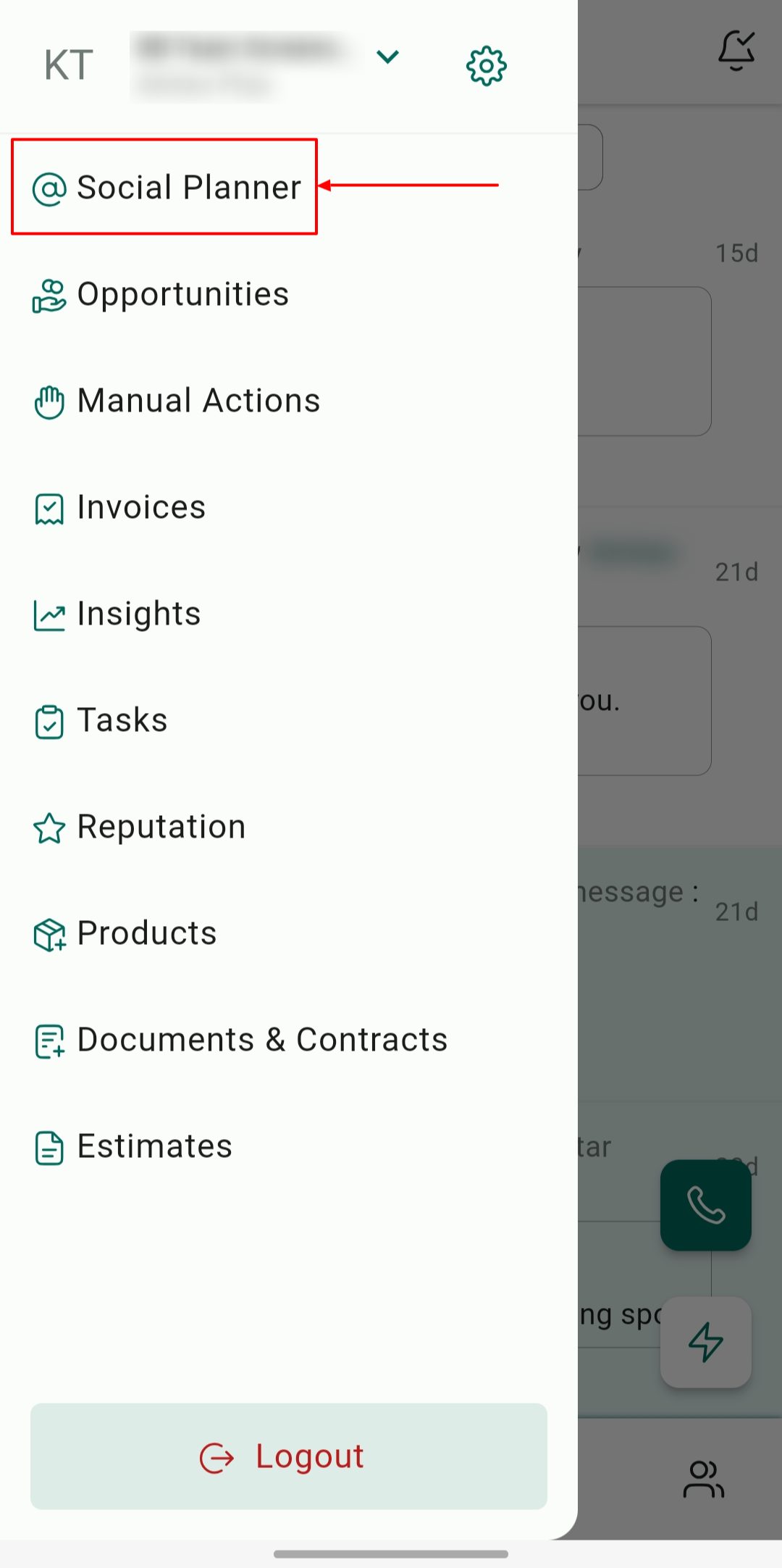 To access the Social Planner, navigate to the left-hand navigation drawer on your mobile app and tap on the Social Planner tile.