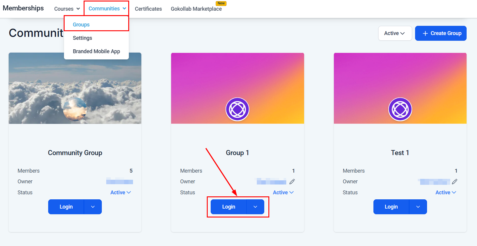 Begin by logging in to the group using the group URL, or from the Membership > Groups section in your account.