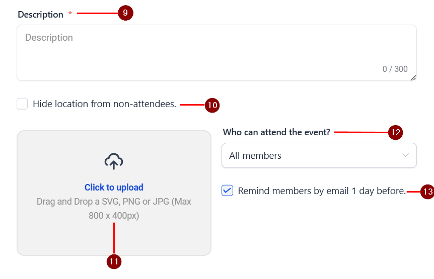 12. Who Can Attend: Define the audience (members only, or members at a certain level).