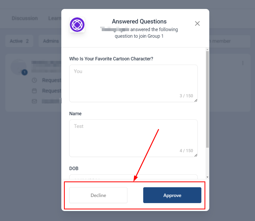 Based on their responses, you can choose to Approve or Decline their membership request.