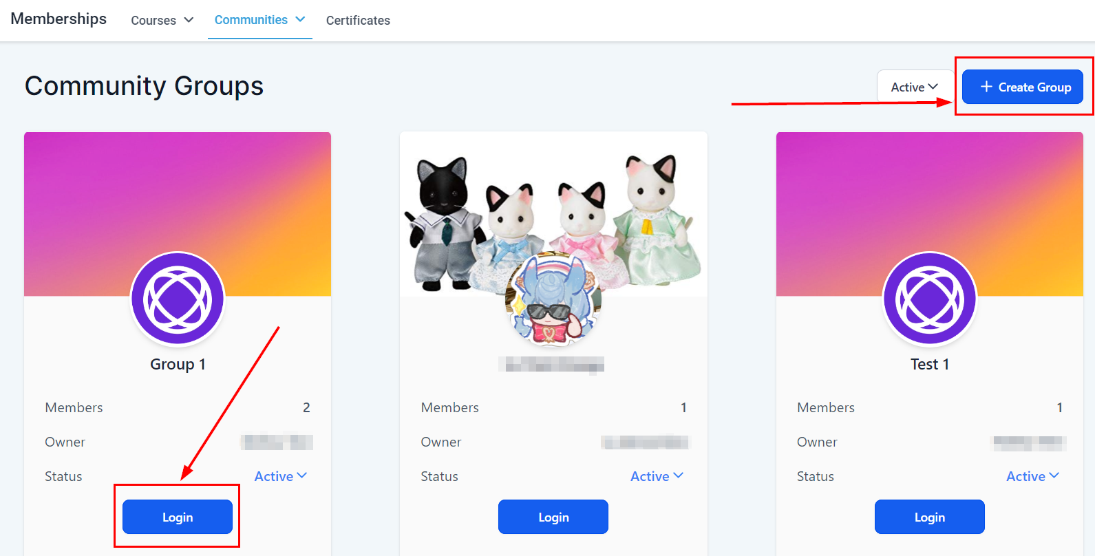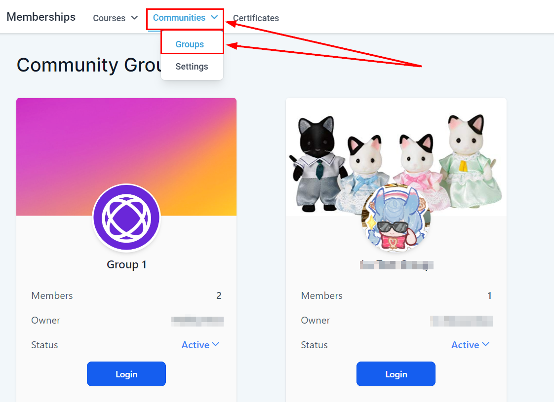 Select "Communities" and then "Groups".